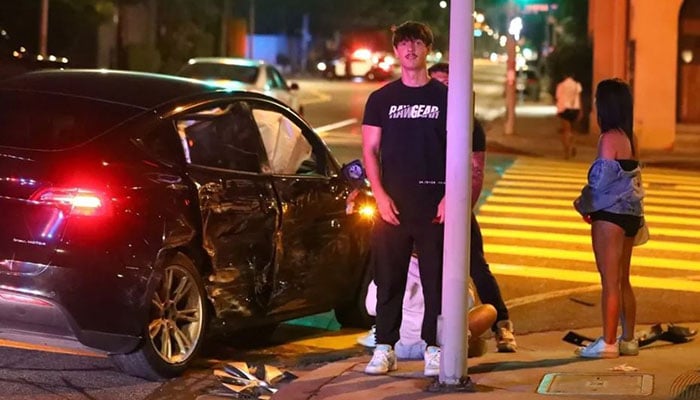 The driver sideswiped the social media star’s Tesla, which totaled as a result.