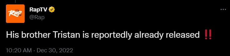 "His brother Tristan is reportedly already released," the follow-up tweet read.